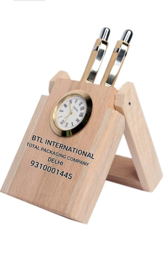 WODDEN PEN HOLDER BOX WITH CLOCK